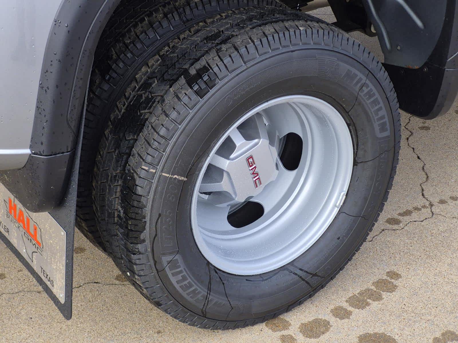 ENGINE, DURAMAX 6.6L TURBO-DIESEL V8, B20-DIESEL COMPATIBLE (470 hp [350.5 kW] @ 2800 rpm, 975 lb-ft of torque [1322 Nm] @ 1600 rpm) Includes (K05) engine block heater.), 1SA PRO SAFETY PLUS PACKAGE includes (UD5) Front and Rear Park Assist, (UFG) Rear Cross Traffic Alert, (UKC) Lane Change Alert with Side Blind Zone Alert and (DWI) trailer mirrors, LPO, BLACK TUBULAR ASSIST STEPS, 4" ROUND (dealer-installed), MIRRORS, OUTSIDE POWER-ADJUSTABLE VERTICAL TRAILERING WITH HEATED AND AUTO-DIMMING UPPER GLASS lower convex mirrors, turn signal indicators, puddle lamps, (U12) perimeter lighting, auxiliary lighting, power folding/manual extending (extends 3.31" [84.25mm]), Black Includes (DD8) auto-dimming rearview mirror. BED VIEW CAMERA camera in the CHMSL to show a view of the cargo bed, display located in rearview mirror (Includes (DRC) Inside Rearview mirror with partial video display. GLASS, DEEP-TINTED, GVWR, 14,000 LBS. (6350 KG) WITH DUAL REAR WHEELS, AUDIO SYSTEM, GMC INFOTAINMENT SYSTEM WITH 7" DIAGONAL COLOR TOUCH-SCREEN, AM/FM STEREO with seek-and-scan and digital clock, includes Bluetooth® streaming audio for music and select phones; featuring wireless Apple CarPlay® and Android Auto® capable (STD), TRANSMISSION, 10-SPEED AUTOMATIC.
