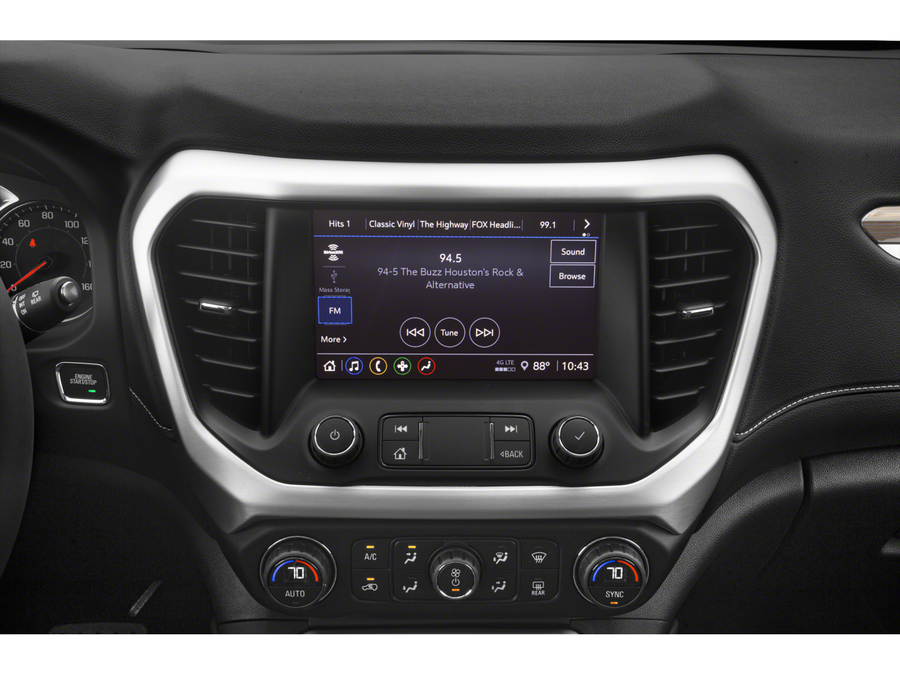 AUDIO SYSTEM, 8" DIAGONAL GMC INFOTAINMENT SYSTEM WITH NAVIGATION includes multi-touch display, AM/FM/SiriusXM stereo, Bluetooth® streaming audio for music and most phones, Android Auto® and Apple CarPlay® capability for compatible phones, advanced voice recognition, in-vehicle apps, personalized profiles for infotainment and vehicle settings (STD), ENGINE, 2.0L TURBO, 4-CYLINDER, SIDI with Variable Valve Timing (VVT) (228 hp [171 kW] @ 5000 rpm, 258 lb-ft of torque [349.8 N-m]) @ 1500 - 4000 rpm (STD), TRANSMISSION, 9-SPEED AUTOMATIC, ELECTRONICALLY-CONTROLLED with 2.0L Turbo engine (STD).