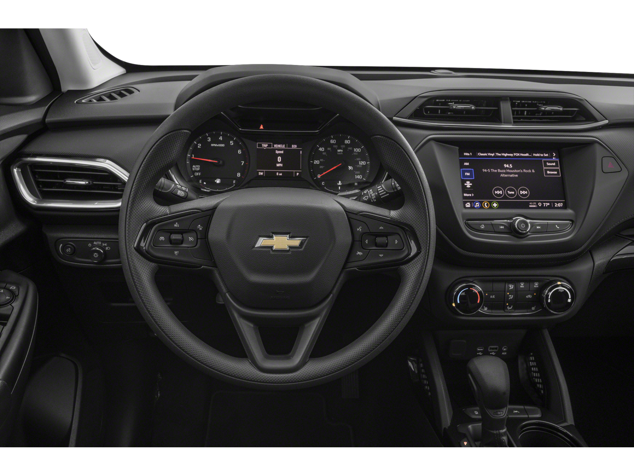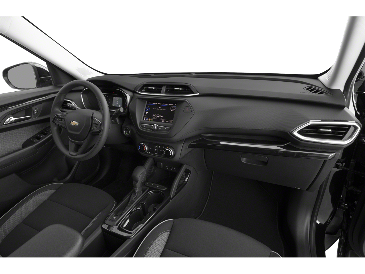 includes (C68) automatic climate control air conditioning, (UIJ) 8" diagonal color touchscreen display, (USS) one type-A and one type-C charging only USB ports, (KI6) 120-volt power outlet, (DD8) inside rearview auto-dimming mirror and (DMS) driver and front passenger illuminated vanity mirrors, covered, sliding visors, (155 hp [115 kW] @ 5600 rpm, 174 lb-ft torque [236 N-m] @ 1600 rpm), includes (UD7) Rear Park Assist Beginning with start of production through November 28, 2022, vehicles will be forced to include (00Y) Not Equipped with Rear Park Assist, which removes Rear Park Assist. See dealer for details or the window label for the features on a specific vehicle. Beginning December 26, 2022, certain vehicles will be forced to include (060) Not Equipped with Rear Park Assist, which removes Rear Park Assist. Does not include later dealer retrofit. See dealer for details or the window label for the features on a specific vehicle.), 7" diagonal color touchscreen, AM/FM stereo. Additional features for compatible phones include: Bluetooth® audio streaming for 2 active devices, voice command pass-through to phone, Apple CarPlay® and Android Auto® capable. (8" screen when (ZL3) Convenience Package and (ZL5) Driver Confidence Package are ordered.) (STD), (STD). Chevrolet LT with Blue Glow Metallic exterior and Jet Black interior features a 3 Cylinder Engine with 155 HP at 5600 RPM*.